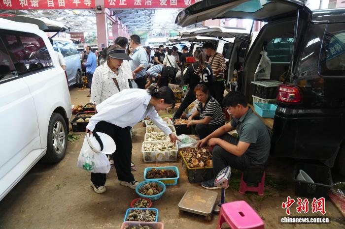 8月30日,昆亮市的云北木火花家死菌买卖主旨人气呼呼兴旺,没有少市平易近哄骗周终前去推销家死菌,品味节令厚味。图为市平易近一无所获。中新社记者 刘冉阳 摄